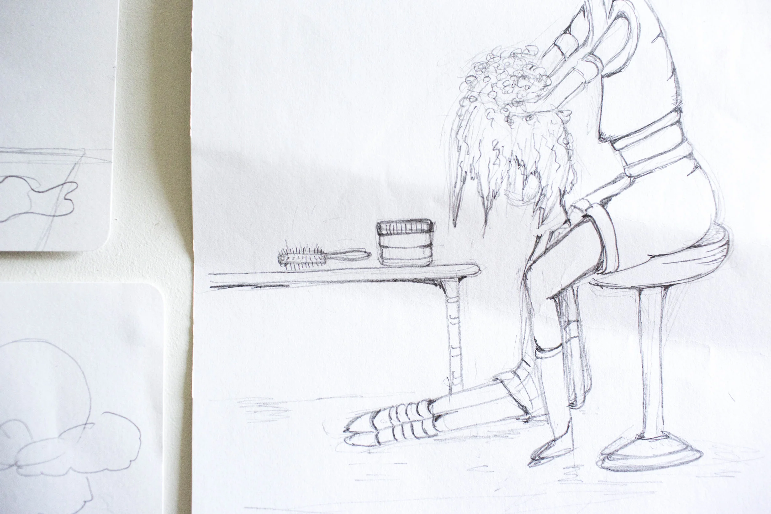 For seven years I just drank everyday. From the time I started uni, to the time I was 25. I was drinking everyday. I graduated, I don't know how? But I could never keep down a job, because I was drunk most of the time. I gave up drinking when I was 25, and I was playing catch up, and my idea of catch up was the traditional pathway, you know? I just had to get a boyfriend who would stick around for long enough, and then he would marry me and then we’d have a dog, then three children, then I would be okay. My friends were already a fair bit in front of me. I got that nine to five job that paid me X amount and that increased and then I would be able to get a house loan. And then I got married to a crazy person who wanted to go overseas by boat. Which totally desecrated the whole idea of having children, because we were broke. When I came back, I realised that I probably didn't want to have children right now. Because you cant do this shit. Like, there is a level of craziness that goes along with this (creative work). Like my bed, just pen marks, because I draw in bed, and I stick it up on the wall. It’s crazy, it’s an obsession. You can’t say to a little baby, ‘can’t you just wait for five hours? Mama’s going to be back, the fridge is open; there you sort yourself out.’ So I was like ‘okay, let it go.’ And I had this mourning that happened because everyone was on their second child. It goes like this ‘oh my god, oh my god I'm pregnant! Oh my god I'm pregnant!’ and all with a cute Facebook update, a picture of the ultrasound or something, and I had to mourn the fact that, that path for me, is dead. And it’s not that I can’t have the baby, maybe I’ll traditionally go down that path of meeting someone again. But my path is not going to look like what I've been taught my path is going to look like.